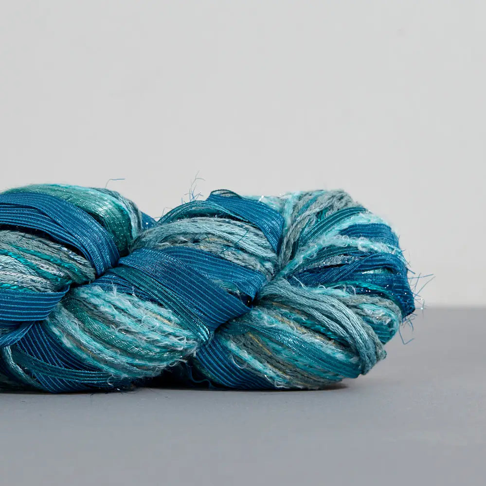 65% Nylon, 10% Cotton, 10% Viscose, 5% Wool, 5% Acrylic, 5% Metallic Worsted Weight - Hand Tied 210 yards | 192 meters